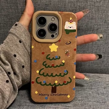 귀여운 만화 크리스마스 트리 패턴 전화 케이스 아이폰 17 16 15 14 13 12 11 프로 맥스 XR X XS 충격 방지 모바일 커버
